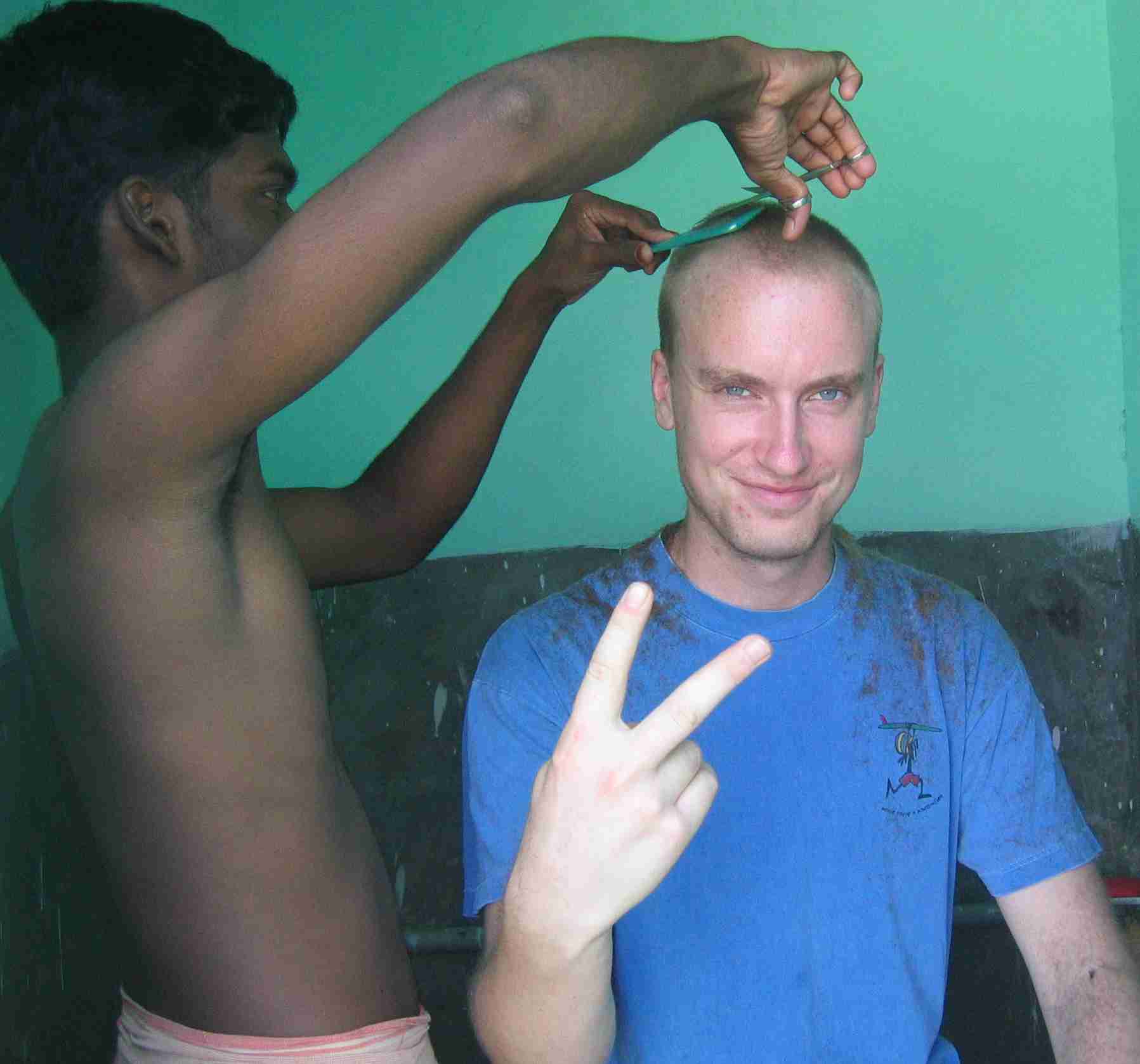 ...Wir gucken hier jeden Abend zum Abendessen news, aber auf Tamil, und da dreht sich sehr viel um Saddam Hussein, den hier komischerweise viele in Schutz nehmen, und um Kricket , das ist schlimmer als mit dem Fußball bei uns. Ich hab hier leider nicht viel Lust zu malen, und auch im Moment keine Möglichkeit dazu. Dafür werde ich hier noch zu n´em richtigen Sänger. Ich sing hier jeden Tag, zwar nicht sehr gut, aber es macht mir richtig Spaß, und den Kindern glaub ich auch. So jetzt ist es Mittag und es hat grad richtig kräftig geregnet und meine ganze Wäsche ist wohl wieder nass." (von Thomas Heyse) |
