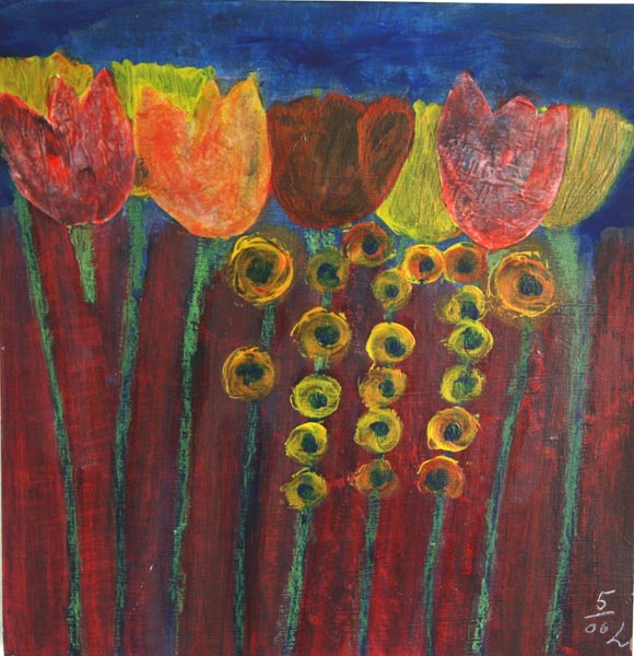 "Ich male, weil ich dadurch Lebensfreude/ Bereicherung/ Energie/ Zufriedenheit/ Ausgeglichenheit - kurz + gut = ein gutes, entspannendes Gefühl empfinde" |