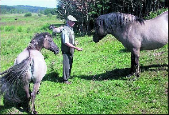Heinz Hinz-Reese ist stolz auf die Herde der Konik-Pferde im Eidertal, er kennt die Tiere auch. Spaziergänger sollten sich allerdings von den Wildpferden fern halten. Foto Scheer |