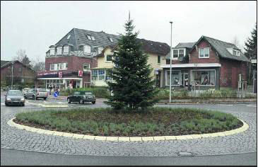Ein Weihnachtsbaum prangt jetzt auf der Inselmitte des Bordesholmer Kreisels. Das Bauwerk kostet 27 000 Euro weniger als ursprünglich veranschlagt. Foto ti |